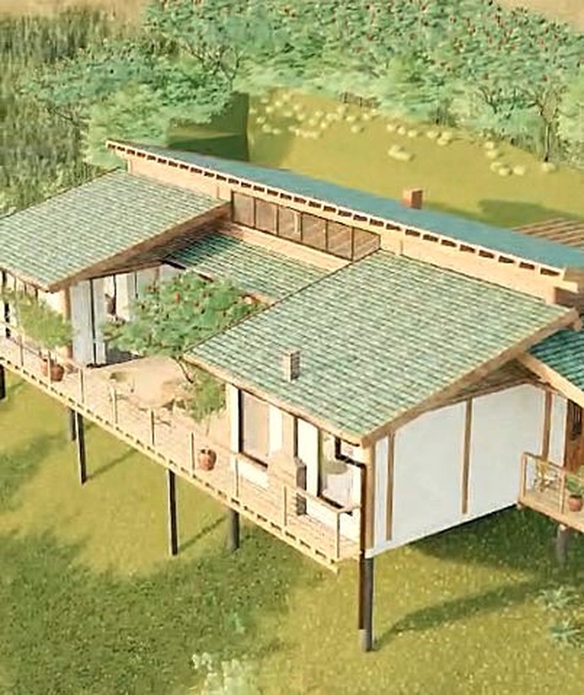 Localizada em um sítio de 80.000 m² em Taubaté (SP), produtor de frutas vermelhas e lavanda, a Casa do Jacarandá nasceu do desafio de construir de forma econômica e com menor impacto ambiental.